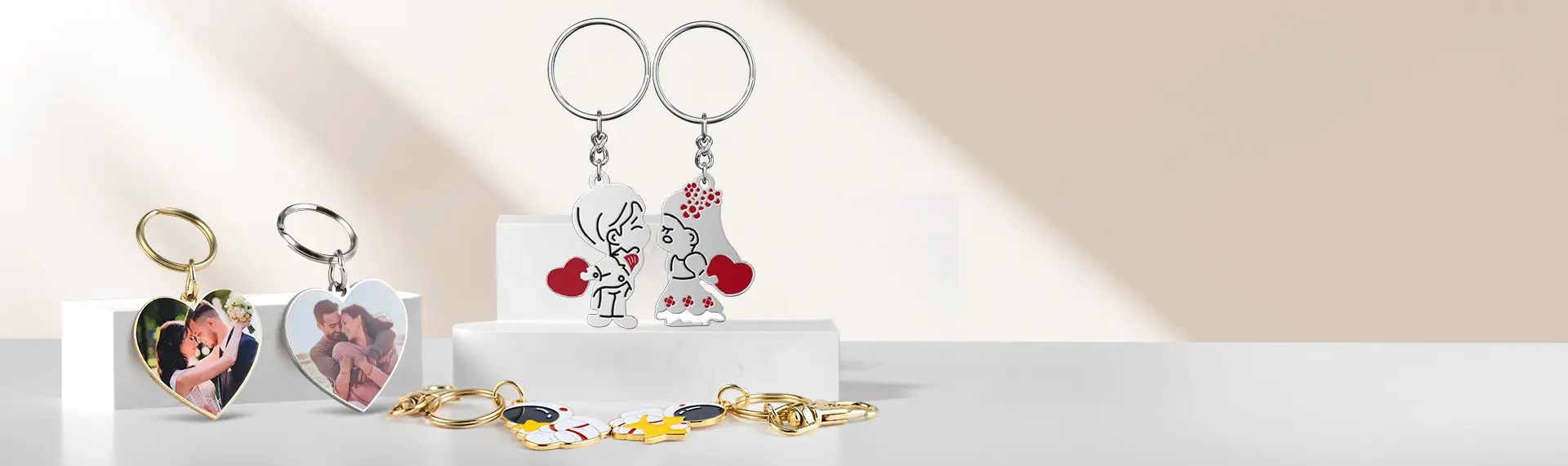 Discover countless design options for couples' keychains in our premium keychains gallery.
